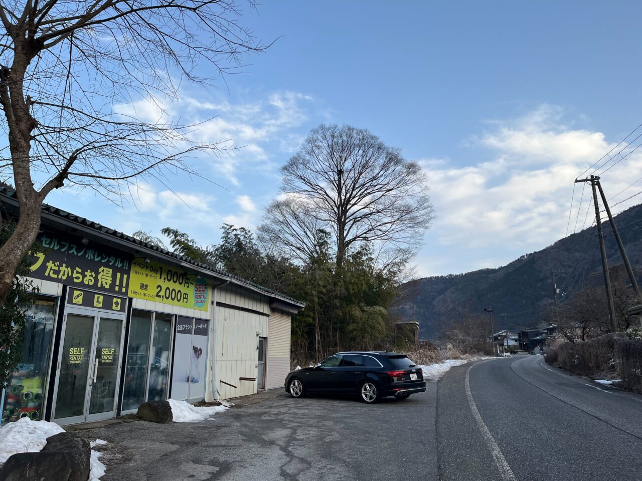 おはようございます。今日は画像のように雲の少ない青空広がる朝を迎えています。この良い天気の放射冷却で寒い朝となっています。お店下手の道路脇温度計-1℃と氷点下になっています。お店の周りも霜で真っ白です。道路には雪なく濡れた状態でもないですが気温が低いため特にスキー場付近では凍結の可能性あるのでスピード控えて気をつけて移動して下さい。今日は06:00台早い時間から車の通過が多いです。07:00台になりより多くなっています。本日はスキー場「イケメンDAY」と全ての男性がリフト券割引となる日、そのためでしょうか。そのためか平日に関わらずご来店も早いです。そんな中、お子さんのシーズンレンタルを求められるお父さんも。この時期シーズンレンタルが動くのは初めて?かもしれないですね。その親子にお二人もちょうど出発したところ、いってらっしゃい。シーズン楽しんで下さい。