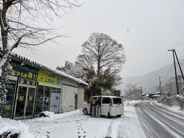 おはようございます。予報通り雪の朝を迎えています。昨夜からの雪はもちろん積もっていますが長浜の方が多いような感じです。街場の方が多いのかもしれないですね。さすがに大雪情報がずっと伝えられているため今朝は各所除雪が早いようです。その中でもいつもながらお店付近から先、スキー場方向の除雪はきれいで轍もなく運転しやすいと思います。今日は路面にもしっかり積もっているのでスタッドレス、またはチェーンは必須でお出掛け下さい。スピードにも気をつけて。気温はお店下手の道路脇温度計で-2℃、寒かった昨日から一段と下がっています。しっかり暖かい格好で。画像はお店open前からお待ちの男女4人組の皆さんの出発の図、いってらっしゃい。奥美濃を予定していたのが道路の関係でこちらに変更、ということです。06:00から1時間近くも待っていてくれたようです。ありがとうございます。