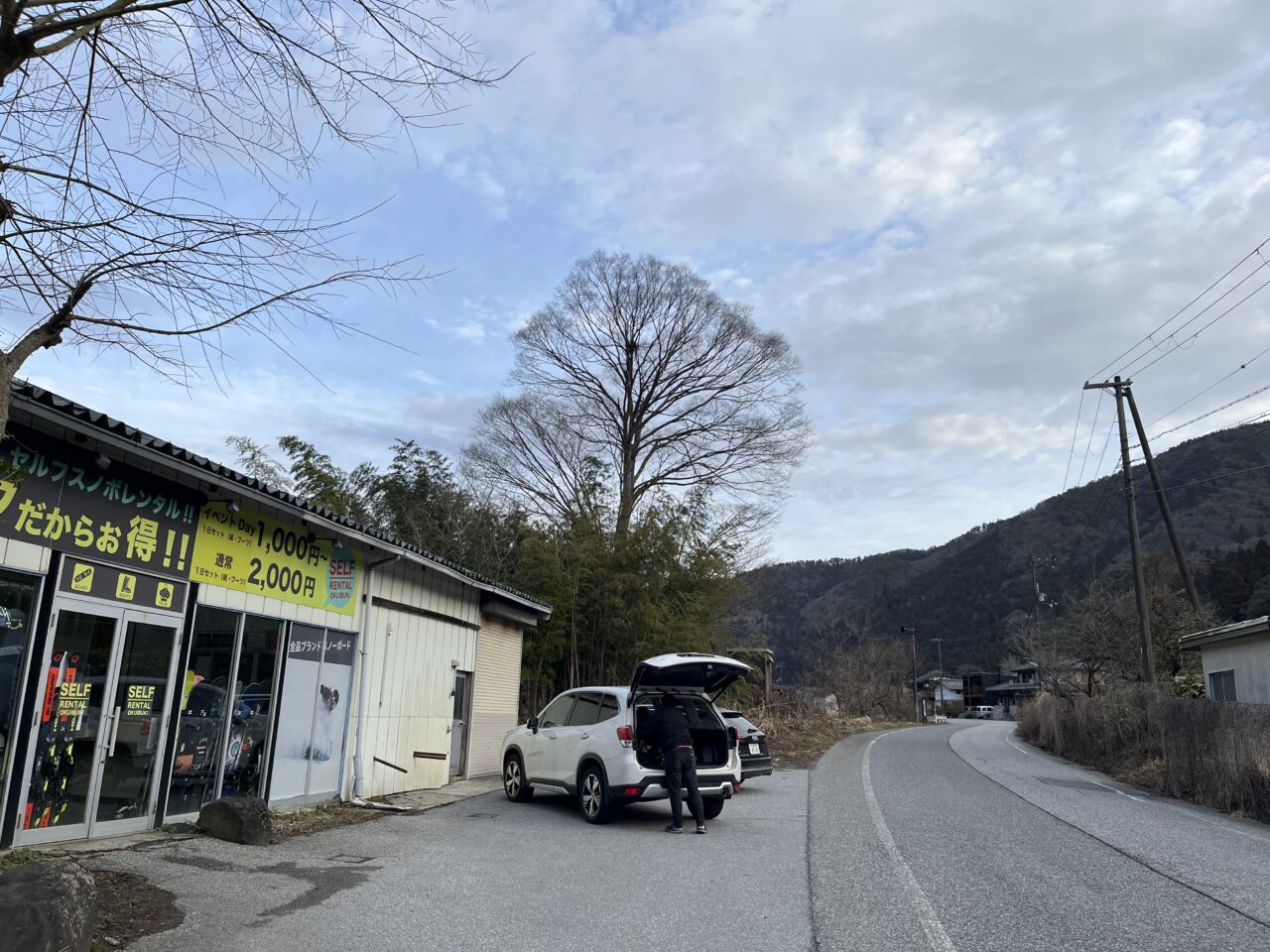 おはようございます。今日も昨日に続き寒い朝を迎えています。お店下手の道路脇温度計で+1℃、昨日と同じ気温です。お店前の畑は霜で少し白くなっています。今日も早くにお出掛けの皆さんは暖かい格好が良さそうです。日中は気温昨日より上がるようなので服装難しいですね。昨夜からの降雪雨なく道路は路面乾いた状態です。運転しやすいですがスピード控えめで安全に移動して下さい。本日スキー場イベントDAYの「イケメンDAY」になっています。全ての男性の皆さんのリフト券がお得に購入できる日です。ぜひ有効に利用して下さい。画像はopen同時に来店された男性おひとりの出発の図、いってらっしゃい。