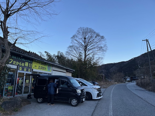 おはようございます。今日も少し気温が緩みましたがそれでもお店下手の道路脇温度計で0℃、今朝もまだまだ寒い朝となっています。今日も早い時間はしっかり暖かい格好でお出掛け下さい。夜中風が強く心配しましたが今の時間穏やかな朝となっています。綺麗に月が見える良い天気を期待させてくれる朝です。画像はこの時期になってもopen前から来店してくれる皆さんが多いですが、本日二番目に到着された大人の男女7人組の皆さんの出発の図、いってらっしゃい。大人のお友達関係良いですね。