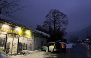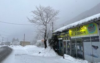 おはようございます。今日はこの時間から画像のように青空広がってきた朝を迎えています。この青空で放射冷却も手伝って今日も寒い朝となっています。お店下手の道路脇温度計で0℃でしたがお店前では車温度計で-1℃、また氷点下の朝です。朝早くにお出掛けの皆さん、しっかり暖かい格好でお出掛け下さい。日中気温上がる予報なので調整できる服装が良さそうです。昨夜からの降雪はなく道路は路面に雪は全くない状態です。スキー場付近凍結の可能性あります。スピード控えて安全に移動して下さい。画像はopen直前に到着されたお二人の出発後の車のお尻、いってらっしゃい。10何年ぶりのスノーボードとのことです。身体はおぼえているので大丈夫ですよ、楽しんできて下さい。 さぁ、2月最初の週も後半戦に入る木曜日、今日も楽しい一日を。enjoy today! […]